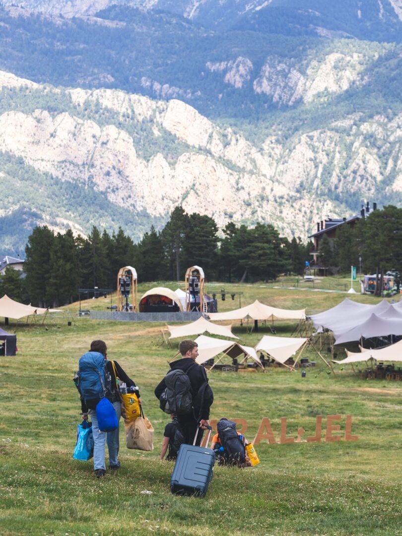 Al llegar a lo que va a ser el recinto en el que vamos a vivir nuestro idilio musical, la parada es casi obligatoria para fotografiar la escena que las ocho letras de PARAL·LEL protagonizaban. A lo lejos, un pequeño escenario en forma de iglú geométrico, enmarcado por un impresionante sistema de sonido FUNKTION ONE que en la distancia hace resonar por la montaña el set de Guillam, curador musical del festival. El set del DJ avanza progresivamente desde el ambient hacia sonidos atmosféricos orgánicos y rítmicos envolventes que suben poco a poco de velocidad. El sonido de la montaña ha comenzado. Todos sonreímos sin cesar: ¡hemos llegado!. Las expectativas son tan altas que el nerviosismo de lo que hemos proyectado en nuestras cabezas empieza a invadirnos emotivamente.