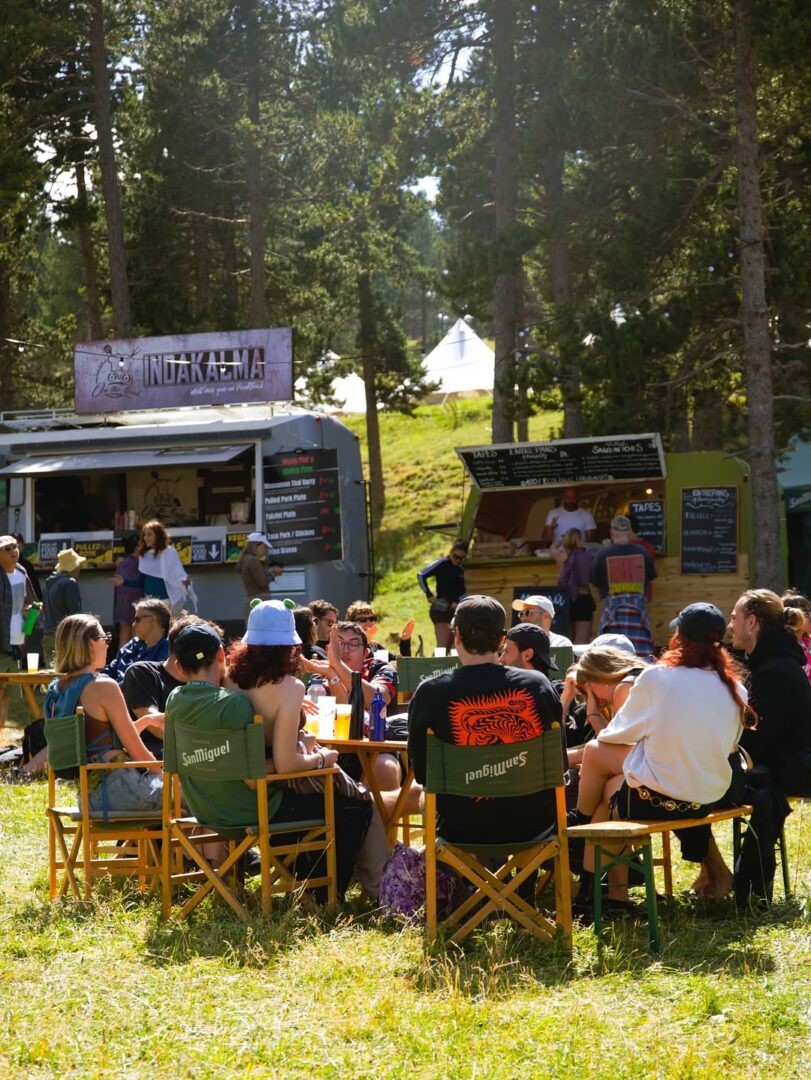 Una vez asentados, cogemos referencias de dónde hemos acampado. Nuestra referencia, un antiguo telesilla verde y una ladera frondosa que nos cubrirá del sol diurno el resto de días. “Esto parece un cuento”. Emprendemos nuestro camino de vuelta hacia el único escenario y de camino nos encontramos con más amigos que rellenan sus botellas de agua potable, más WCs portátiles repartidos por el vasto recinto, impidiendo aglomeraciones gracias a todo el espacio y numerosos útilitarios.