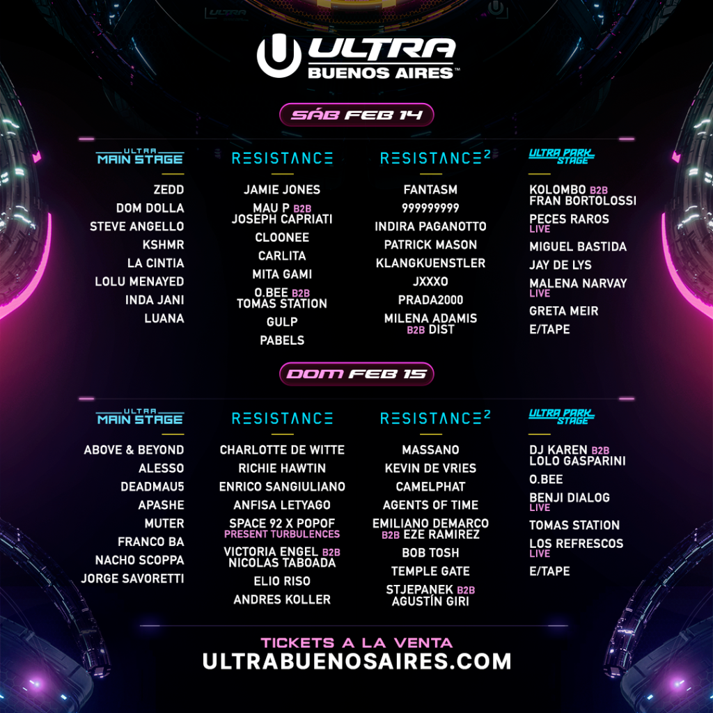 Ya es oficial: ULTRA Buenos Aires 2026 acaba de soltar los lineups diarios por escenario de su sexta edición, que se celebrará el sábado 14 y domingo 15 de febrero de 2026 en el Parque de la Ciudad. El anuncio confirma una curaduría amplia y ambiciosa, capaz de recorrer todo el espectro de la música electrónica contemporánea: desde el EDM de alto impacto hasta el techno más crudo, el house de groove marcado y las nuevas propuestas live que empujan la escena regional.